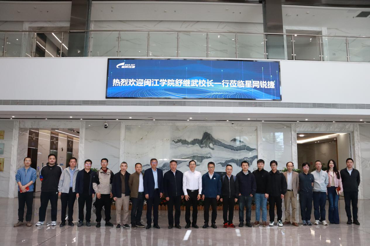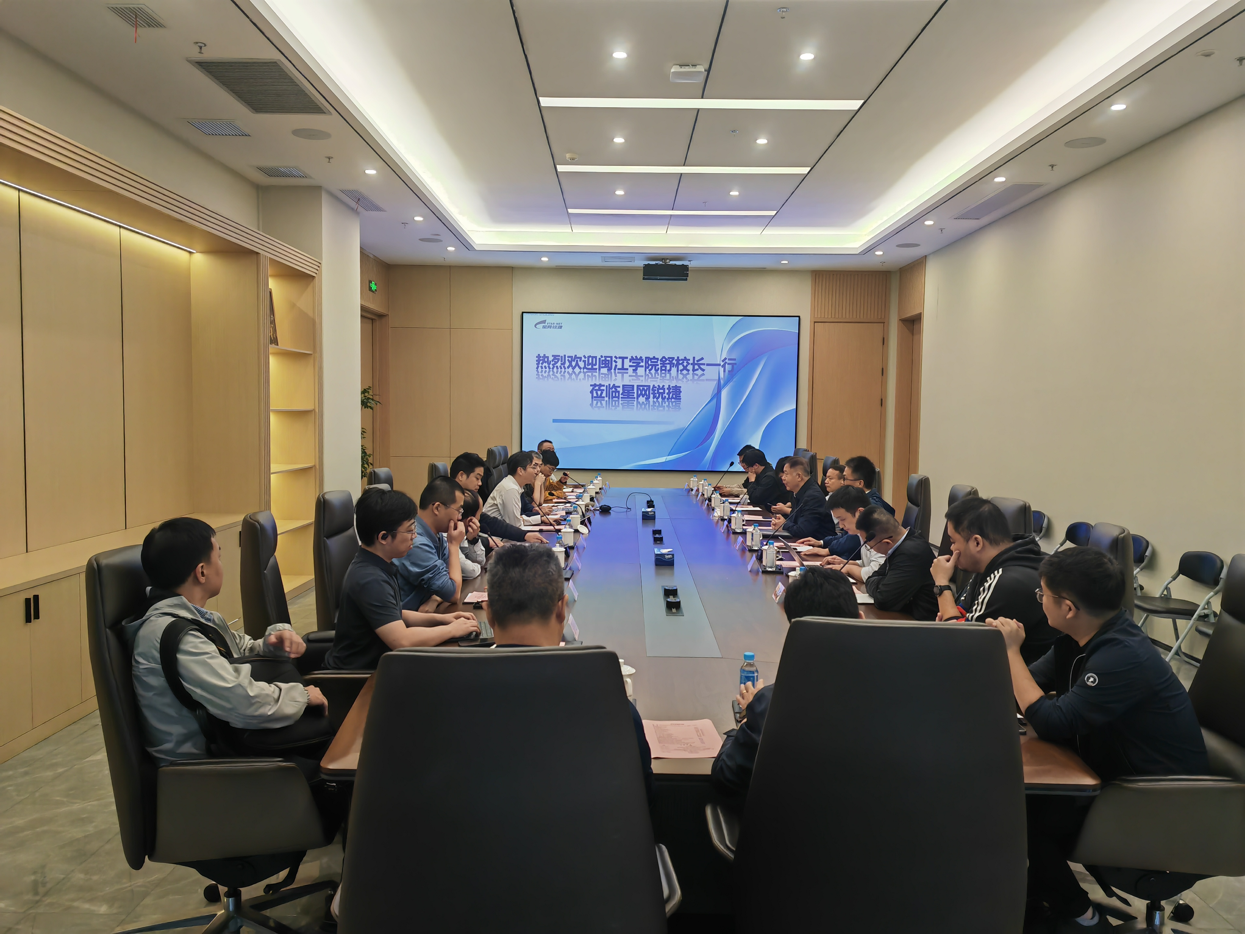 舒继武校长一行首先参观了星网锐捷智慧展厅,详细了解了公司在AI应用方面的最新创新成果与行业解决方案,对公司以AI技术赋能教育、医疗、金融、政务办公等领域表示高度赞同。随后,双方进行进一步深入座谈交流。会上,星网锐捷总经理黄昌洪对专家组一行的到访表示热烈欢迎,星网锐捷与清华大学、厦门大学、闽江学院等高等院校拥有深厚的合作基础,在科技成果转化、科技人才培养等方面始终保持着长期合作,黄昌洪总经理希望通过此次交流,进一步拓展合作的宽度广度。闽江学院校长舒继武在发言中表示,高校与行业龙头企业深化合作,是推动教育、科技、人才三位一体协同发展的关键路径,闽江学院高度重视与星网锐捷的携手合作,希望通过双方的优势互补,为学校的人才培养注入最前沿的产业视角,也为企业的技术革新提供坚实的学术支撑。